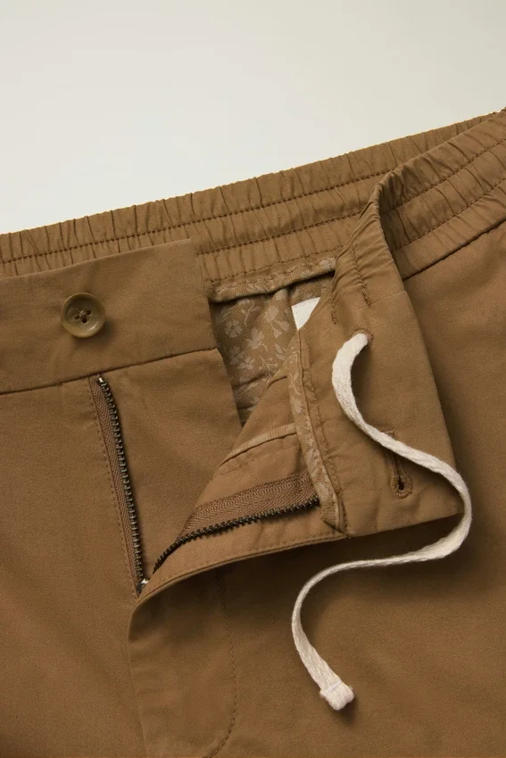 Cordino interno naturale | Chiusura con patta e bottoni | Tasche stampate | Tasche posteriori a filetto