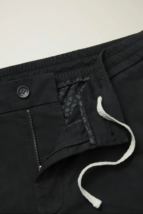 Cordino interno naturale | Chiusura con patta e bottoni | Tasche stampate | Tasche posteriori a filetto
