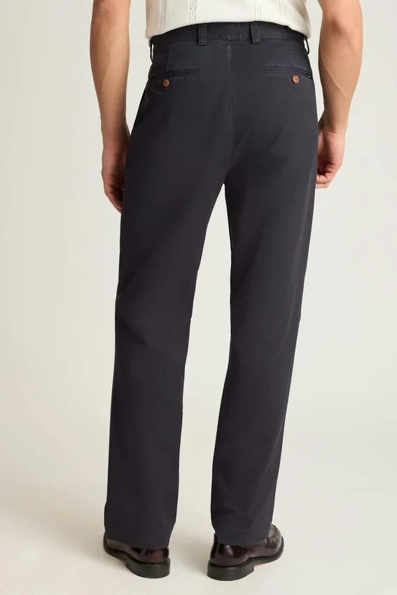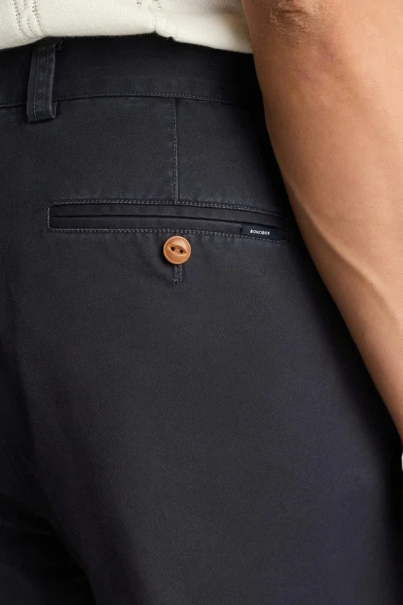Tessuto chino originale con lavaggio stone wash | Doppie pieghe | Tasca portamonete con patta | Tasche posteriori a filetto con chiusura a bottone