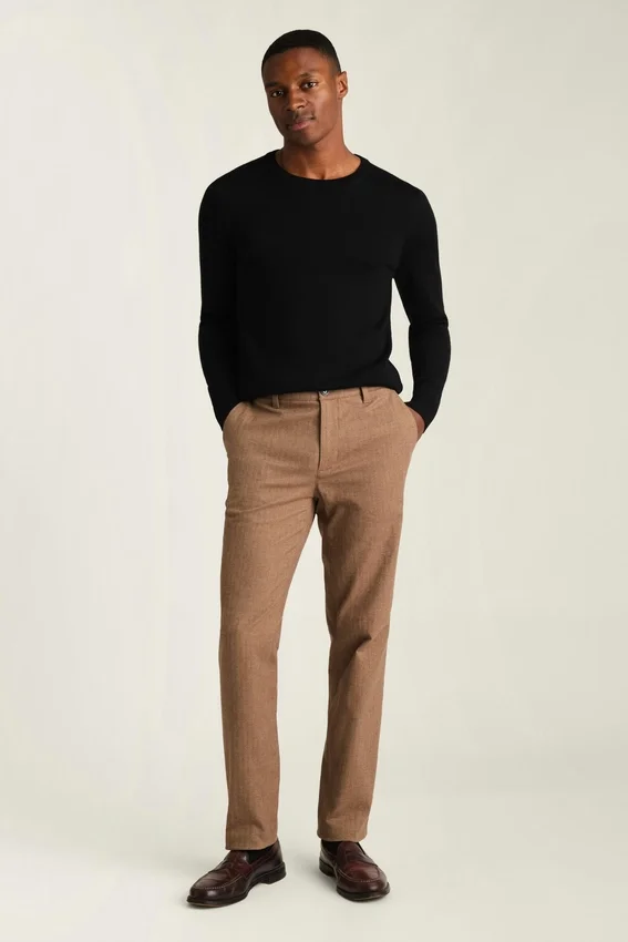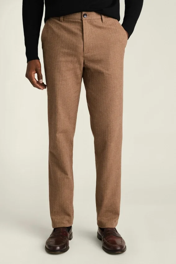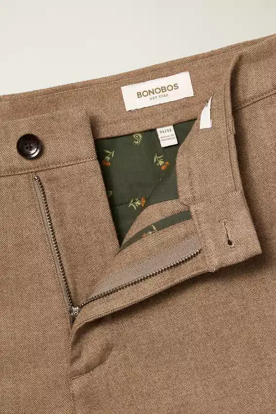 I pantaloni chino a spina di pesce spazzolati di Bonobos offrono la morbidezza della flanella senza il peso. Comodi pantaloni chino da uomo a spina di pesce realizzati per un look raffinato da indossare tutti i giorni.