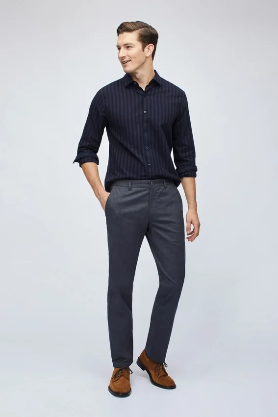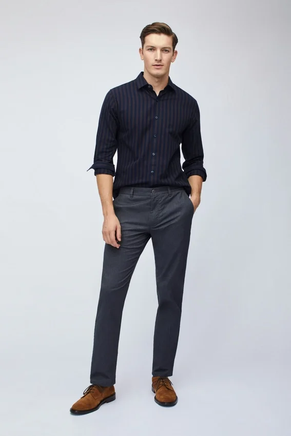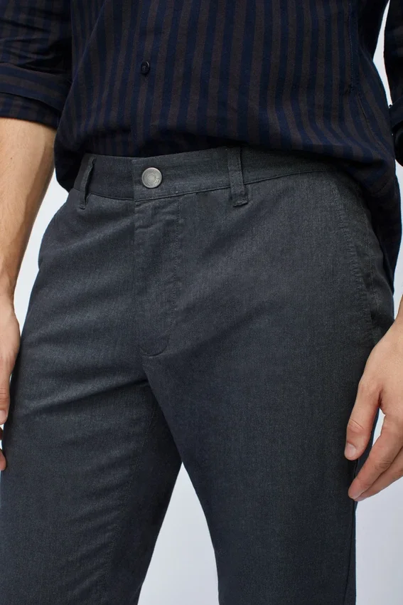 Questi pantaloni chino presentano una leggera elasticità e un tessuto melange con colori e motivi unici. Sono comodi, eleganti e disponibili in diverse opzioni di vestibilità. Spedizione gratuita!