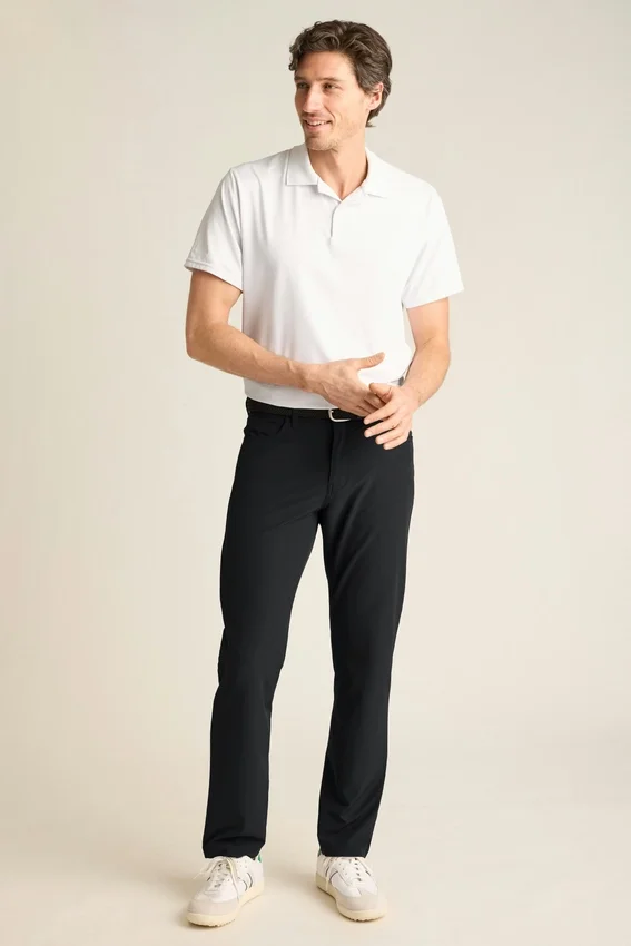 I pantaloni Course Legend a 5 tasche di Bonobos offrono elasticità e prestazioni con uno stile ispirato al denim. Pantaloni da Golf da uomo pensati per i viaggi, i weekend e il tempo sul campo.