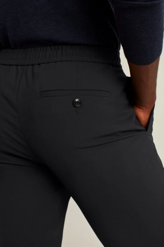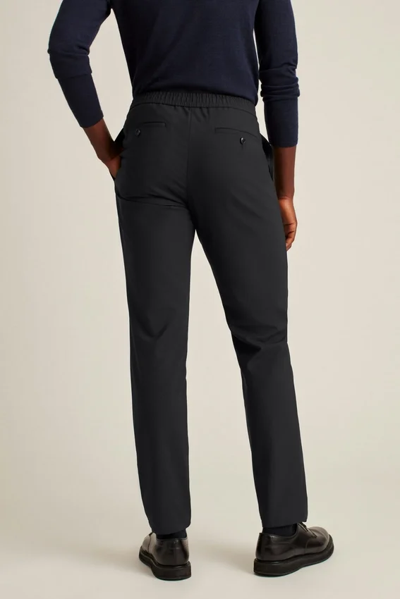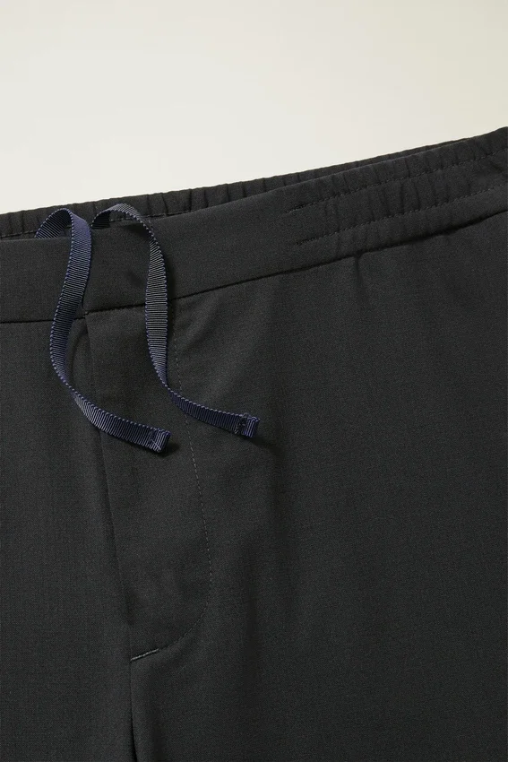 Il business incontra il comfort con una raffinata lana per tutte le stagioni abbinata a una cintura elasticizzata.