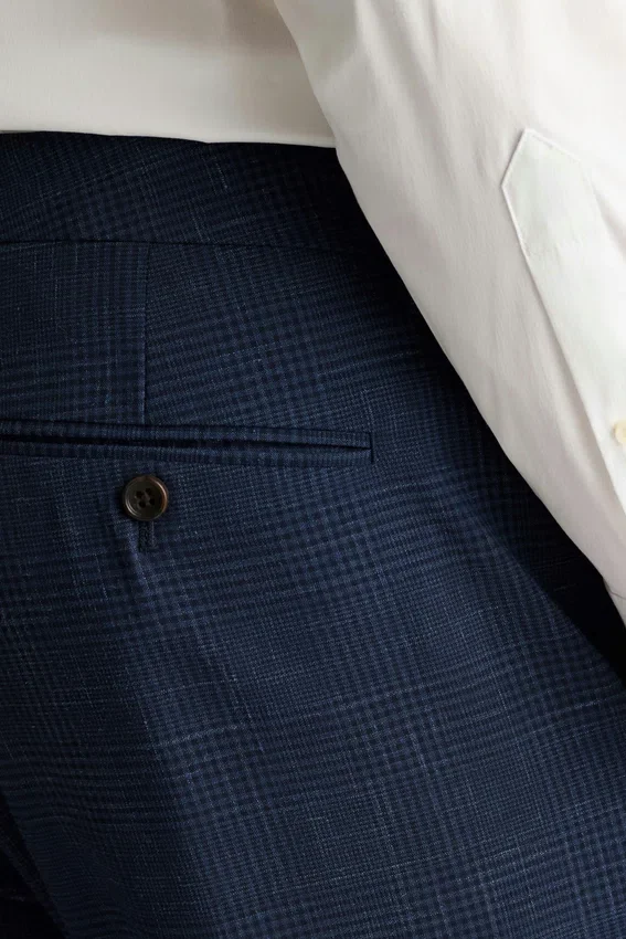 Tessuto Marzotto | Chiusura con gancio e barra | Tasche posteriori con bottoni | Fodera anteriore sulle gambe