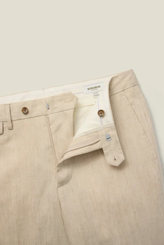 Costruzione classica e dettagli raffinati: questi pantaloni eleganti in lino italiano di alta qualità sono perfetti per ogni occasione.