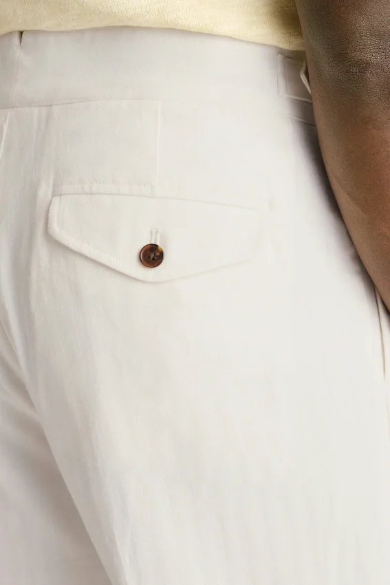 Vita in stile fascia | Fibbia con linguetta laterale singola per una vestibilità personalizzabile | Tasche posteriori con patta | Parte anteriore a doppia piega | Vita leggermente più alta