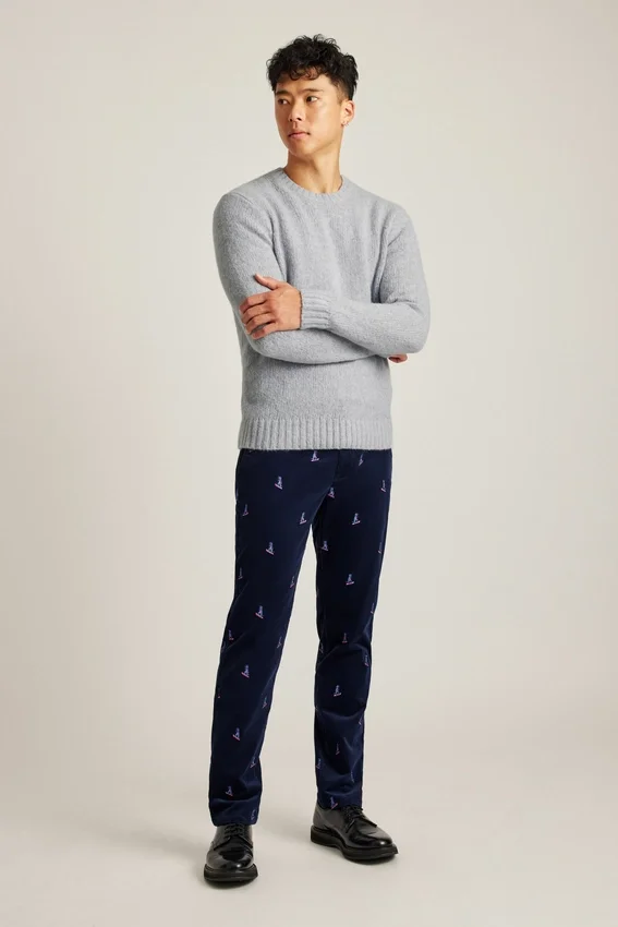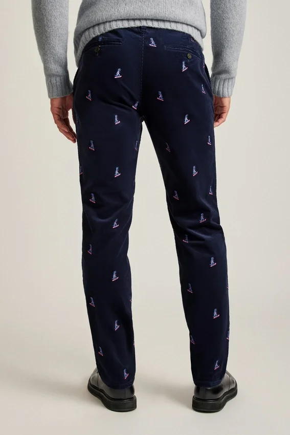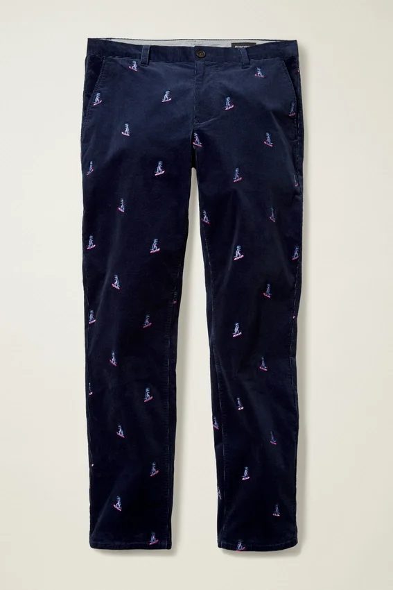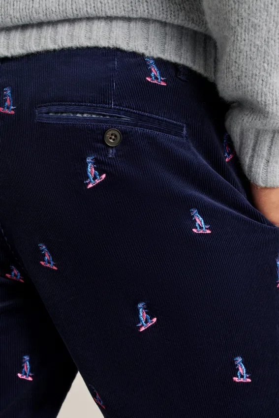 Pantaloni in velluto a coste elasticizzato ricamati