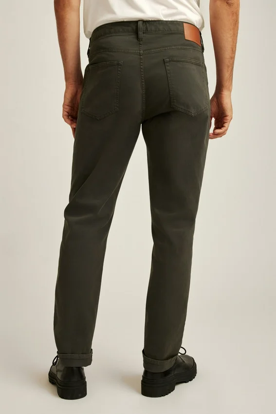 Modello a 5 tasche | Chiusura con gancio e rinforzo a rivetto | Cotone italiano tinto in capo | Tasche stampate