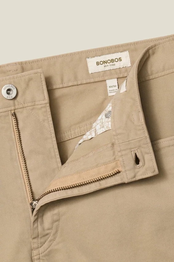 Modello a 5 tasche | Chiusura con gancio e rinforzo a rivetto | Cotone italiano tinto in capo | Tasche stampate