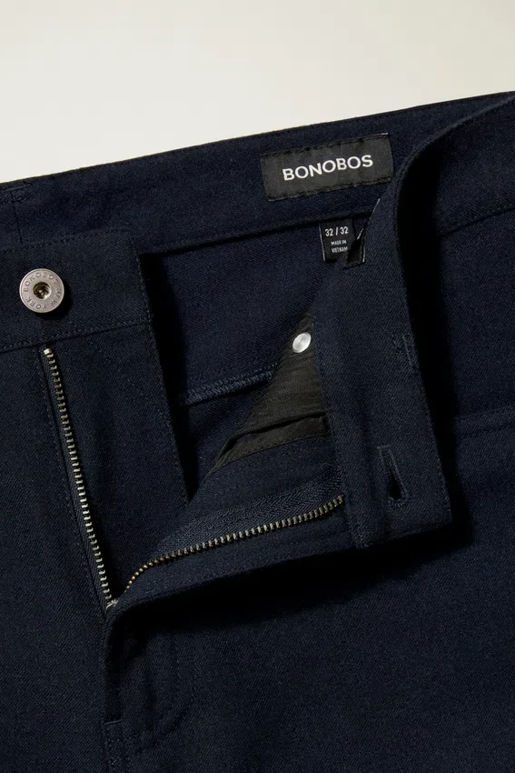 Raffinato tessuto giapponese spazzolato | Tasche leggere a spina di pesce | Chiusura con linguetta e rivetti con logo Bonobos
