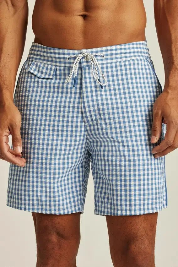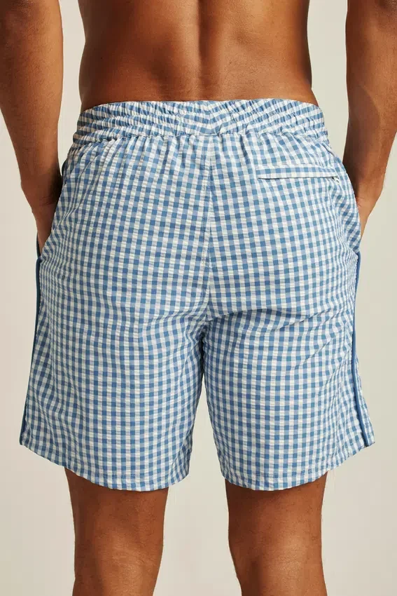 Pantaloncini da bagno in seersucker con stile e funzionalità sia per la spiaggia che per il lungomare.
