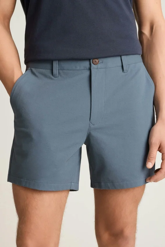 Lo stesso tessuto non stirabile ed elasticizzato in 4 direzioni dei nostri pantaloni chino n. 1, ridimensionato per creare i pantaloncini chino da uomo perfetti. Acquista pantaloncini chino leggeri da uomo.