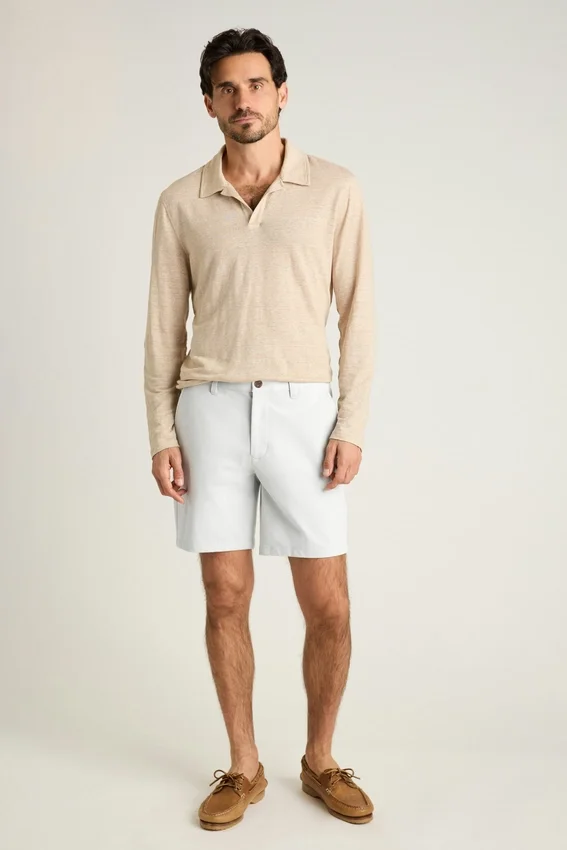 Lo stesso tessuto non stirabile ed elasticizzato in 4 direzioni dei nostri pantaloni chino n. 1, ridimensionato per creare i pantaloncini chino da uomo perfetti. Acquista pantaloncini chino leggeri da uomo.