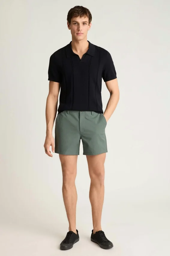 Lo stesso tessuto non stirabile ed elasticizzato in 4 direzioni dei nostri pantaloni chino n. 1, ridimensionato per creare i pantaloncini chino da uomo perfetti. Acquista pantaloncini chino leggeri da uomo.