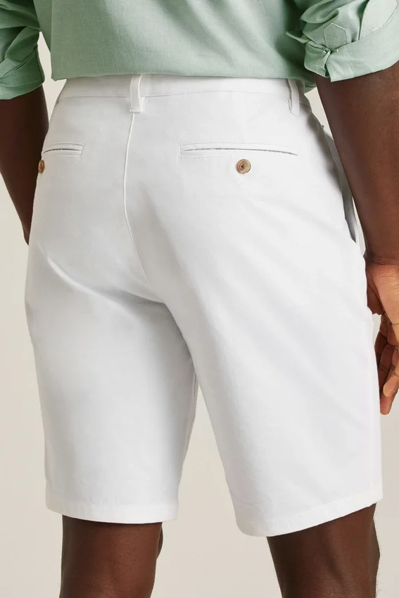 Lo stesso tessuto non stirabile ed elasticizzato in 4 direzioni dei nostri pantaloni chino n. 1, ridimensionato per creare i pantaloncini chino da uomo perfetti. Acquista pantaloncini chino leggeri da uomo.