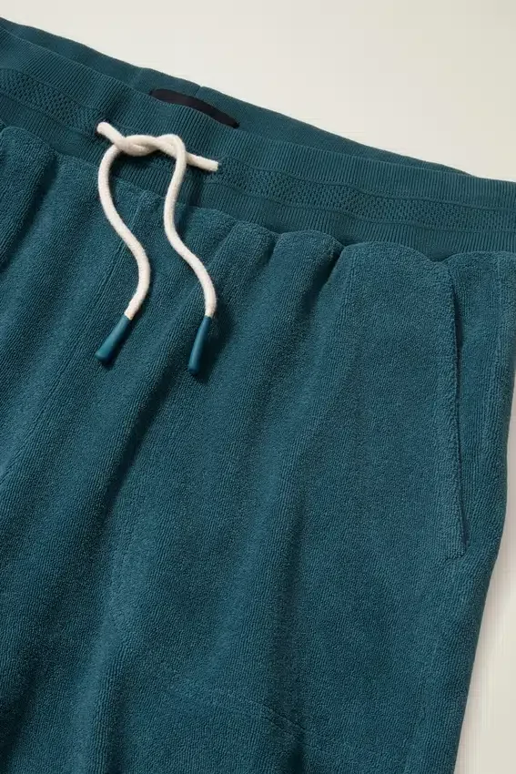 Tessuto in spugna testurizzato con speciale cintura a costine per un look casual e alla moda | Tasche a filetto sul davanti, tasca applicata sul retro | Cordino e elastico in vita | 18 cm