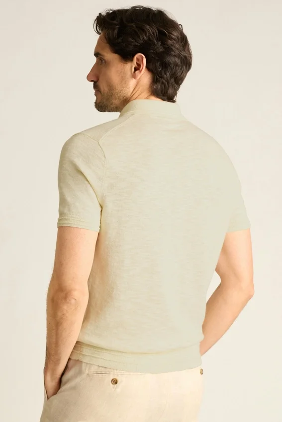 Filato morbido di cotone e lino con trama fiammata | Jersey | Chiusura con bottoni | Maniche corte | Leggero