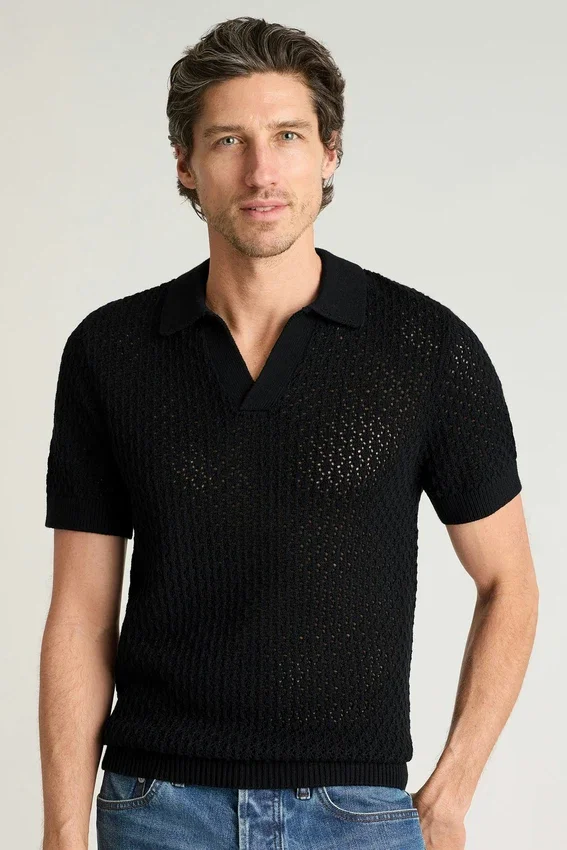 Una polo in maglia dal gusto retrò, best-seller, realizzata con filati stagionali e disegni originali, pronta a conquistare il tuo guardaroba.