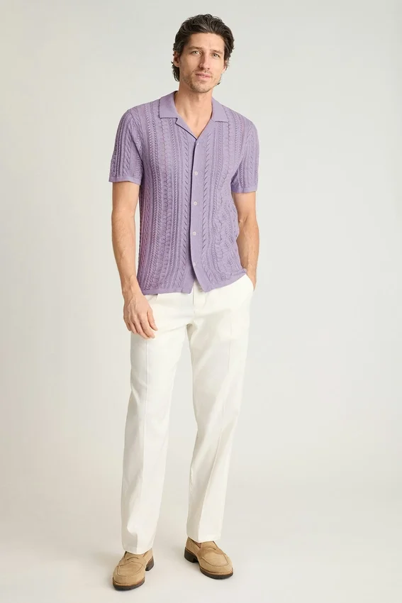 Una polo in maglia dal gusto retrò, best-seller, realizzata con filati stagionali e disegni originali, pronta a conquistare il tuo guardaroba.