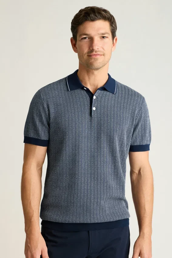 Una polo in maglia dal gusto retrò, best-seller, realizzata con filati stagionali e disegni originali, pronta a conquistare il tuo guardaroba.