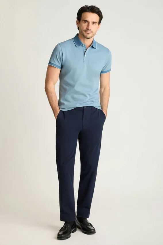 Cotone Pima elasticizzato con trama a piqué e bordi a costine a maglia piatta | Finitura anti-odore, antimacchia e traspirante