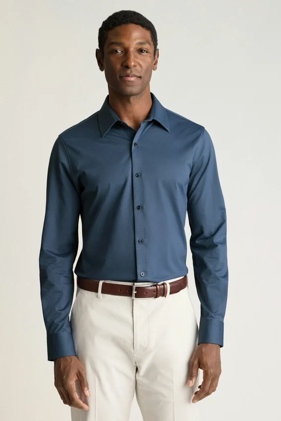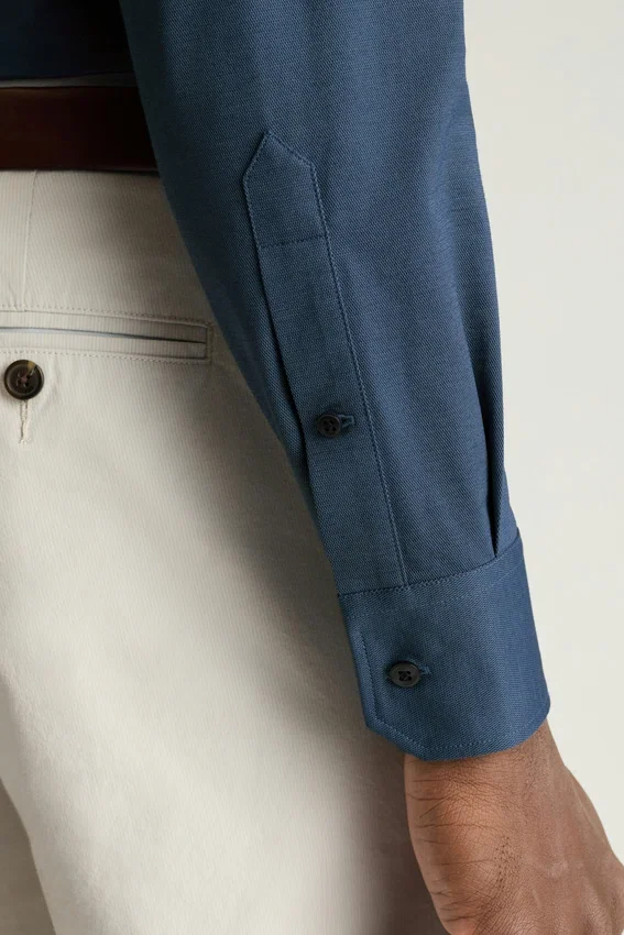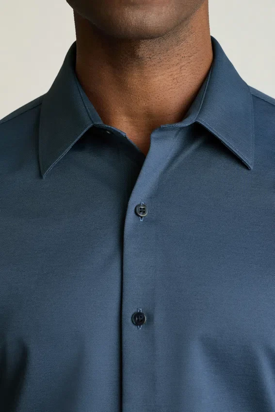 Colletto semi-allargato | Abbottonatura alla francese e polsini a mitra | Stecche del colletto rimovibili | Le fibre Coolmax® aiutano a regolare la temperatura corporea sia quando fa caldo che quando fa freddo | Assorbe il sudore e permette il passaggio del calore