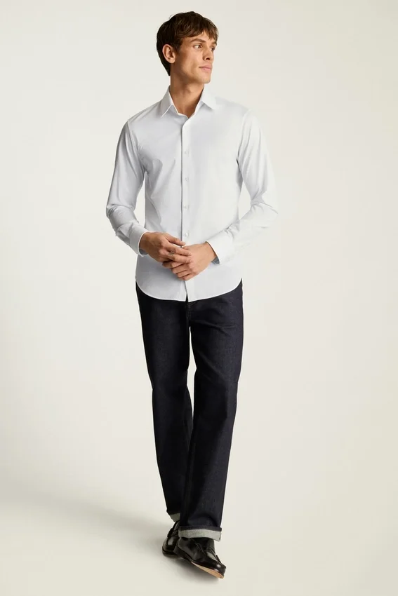 Colletto semi-allargato | Abbottonatura alla francese e polsini a mitra | Stecche del colletto rimovibili | Le fibre Coolmax® aiutano a regolare la temperatura corporea sia quando fa caldo che quando fa freddo | Assorbe il sudore e permette il passaggio del calore