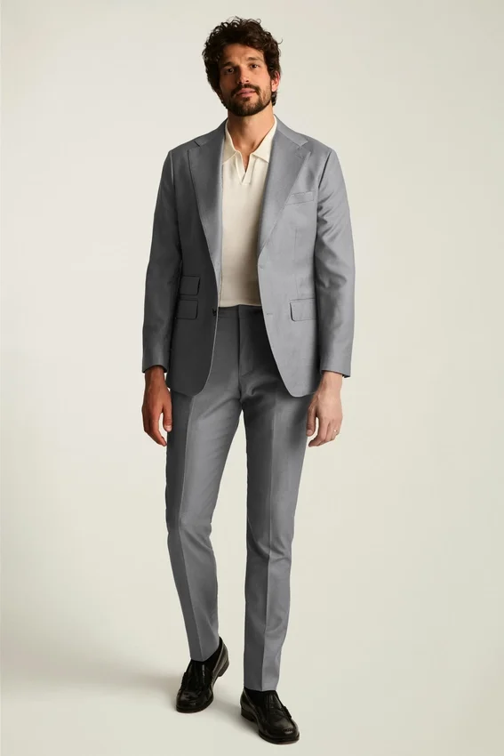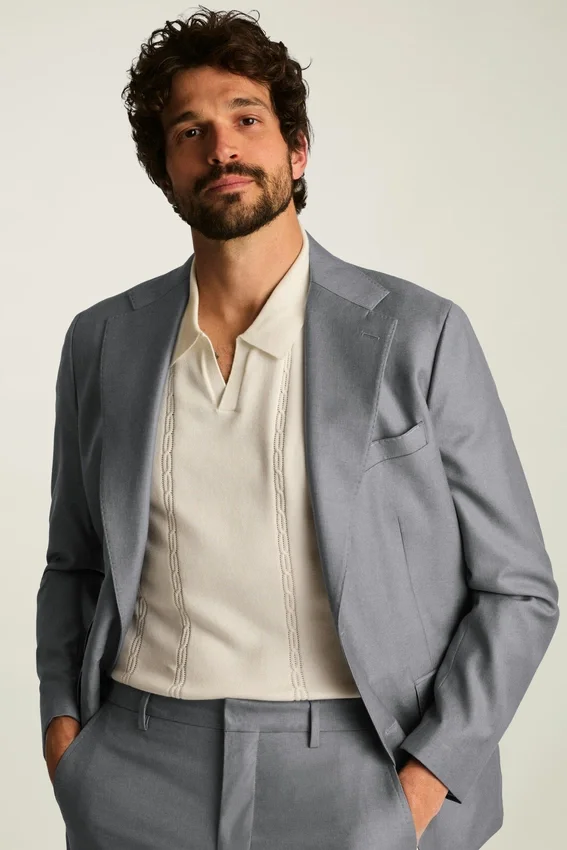 Il modello è alto 188 cm e indossa una 40R in versione Slim Fit