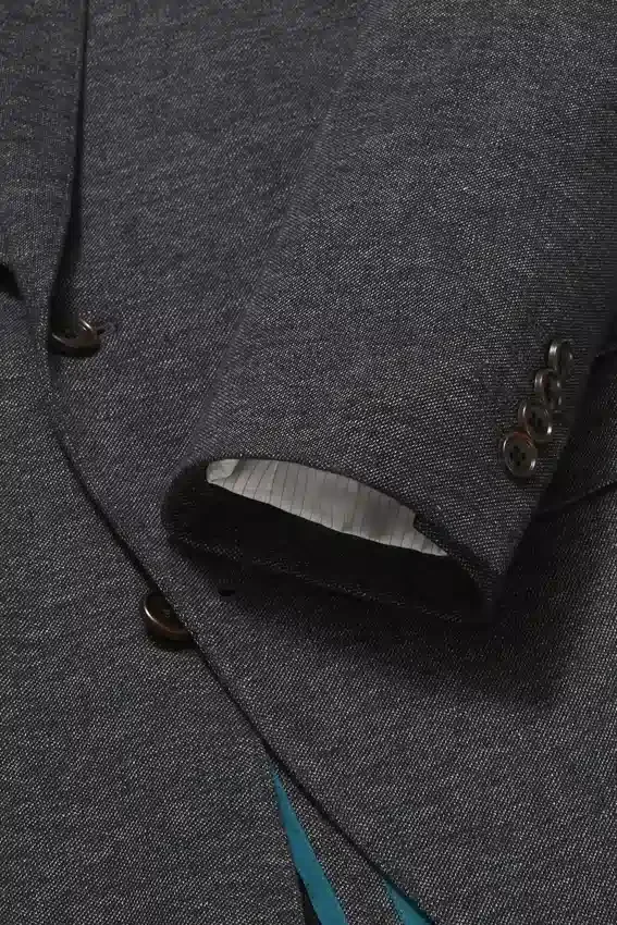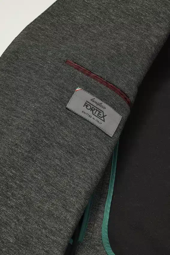 Giacca per tutte le stagioni con fodera minima, realizzata in un tessuto melange a maglia pregiata del Lanificio Fortex | 8,3 cm | Tasche con patta | Monopetto a due bottoni | Interno sfoderato con rinforzo sulle spalle e bordatura sulle cuciture | Maniche foderate | Bottoni non funzionali sui polsini | Doppio spacco | Struttura leggera | Tasche interne a filetto