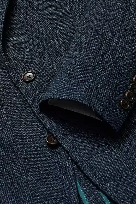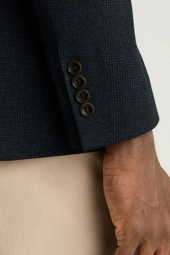 8,25 cm Larghezza del risvolto | Tasche con patta | Monopetto a due bottoni | Parzialmente foderato | Maniche foderate | Bottoni non funzionali ai polsini | Doppio spacco | Struttura leggera | Tasche interne a filetto