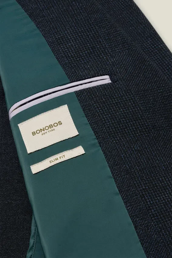 Il modello è alto 188 cm, ha un torace di 102 cm e indossa una 40R in Slim Fit