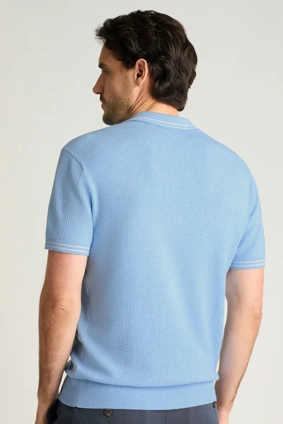 Filato naturalmente morbido e flessibile per facilitare i movimenti | Assorbimento dell’umidità | Cuciture testurizzate su tutta la superficie | Bordino su colletto e polsini | Chiusura con bottoni a pressione sull’abbottonatura | Leggero, traspirante