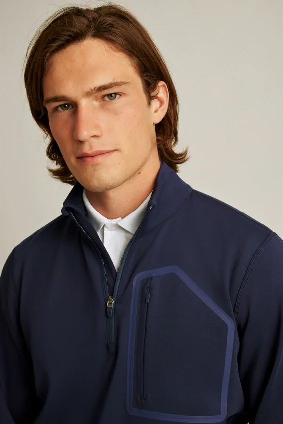 Maglia con mezza zip di alta qualità con elasticità a 4 vie | Maglia doppia | Traspirante | Cuciture piatte | Tasca sul petto incollata | Tasche laterali con zip