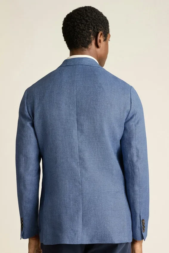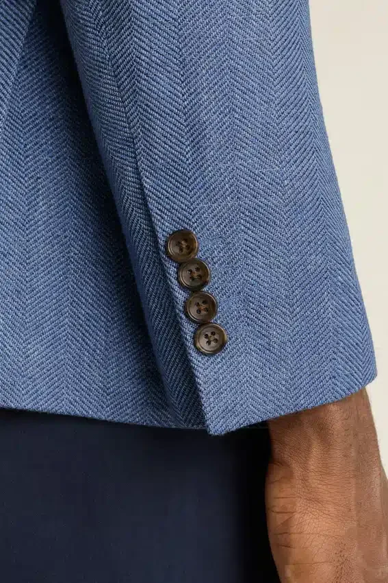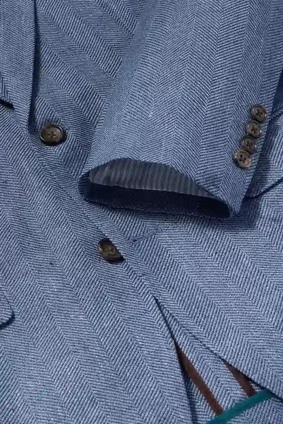 Tessuto Marzotto | Tasche con patta | Interno sfoderato con bordino sulle cuciture | Bottoni non funzionali sui polsini | Fodera delle maniche | Doppio spacco | Tasche interne e passante | Spilla sul bavero rimovibile