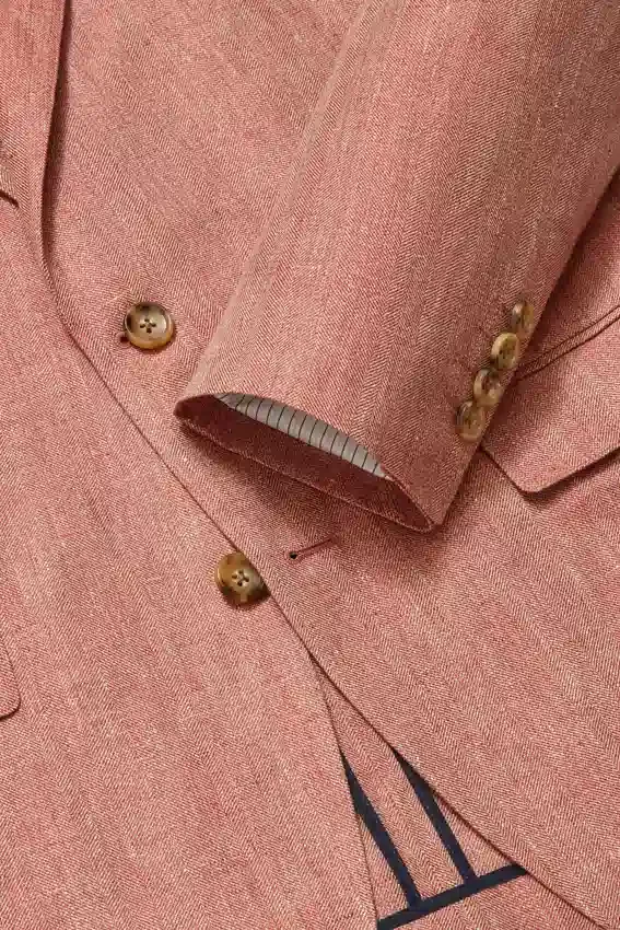 Revers a V | Monopetto a 2 bottoni | Tasche con patta | Bottoni sui polsini non funzionali | Senza fodera e Unconstructed | Tasche applicate interne | Doppio spacco | Maniche foderate