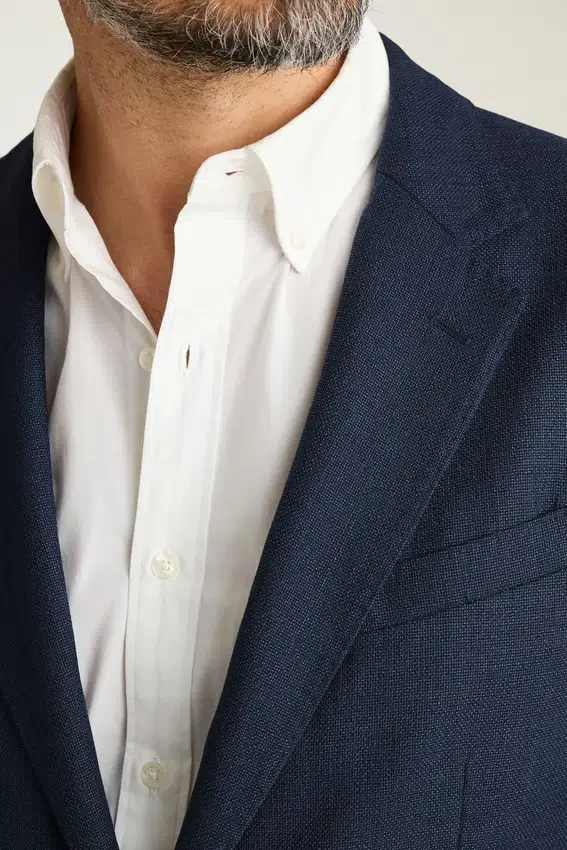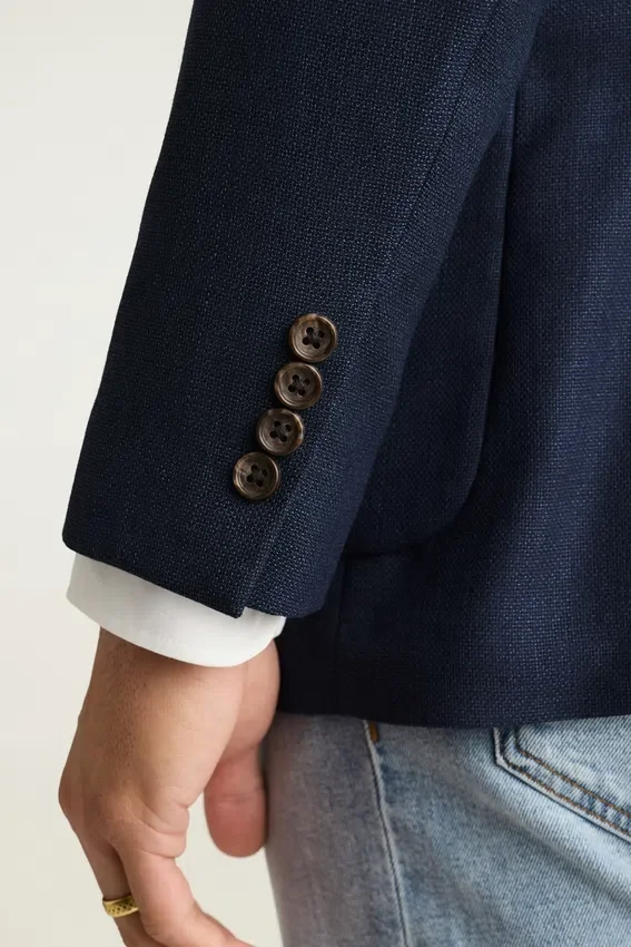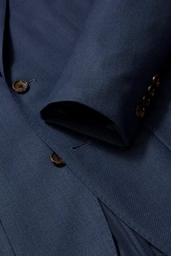 Di costruzione leggera e con fodera minima, questo blazer leggero è realizzato in lana Hopsack traspirante di Marzotto. | Revers da 8,25 cm | Tasche applicate | Monopetto a due bottoni | Interno sfoderato con rinforzo sulle spalle e bordatura sulle cuciture | Fodera sulle maniche | Bottoni non funzionali sui polsini | Doppio spacco | Tasche interne a filetto