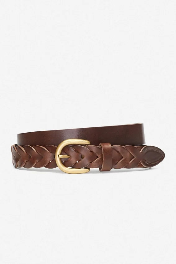 Larghezza 1,25″ | Pelle pieno fiore | Estremità intrecciata | Fibbia in ottone spazzolato | Passante singolo